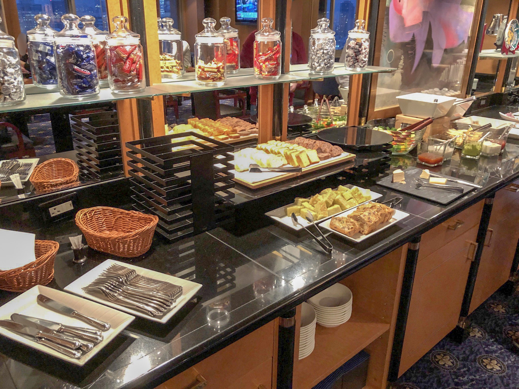ウェスティンホテル東京のカクテルタイムは17:30〜19:30となっています。エグゼクティブラウンジの窓は北向き(六本木方面)となっており、夜には東京タワーのライトアップを望むこともできます。座席は30席弱なので、カクテルタイムになるとけっこう混み合います。カクテルタイムを楽しむ場合は、時間前にスタンバイしていた方が良いかもしれません。