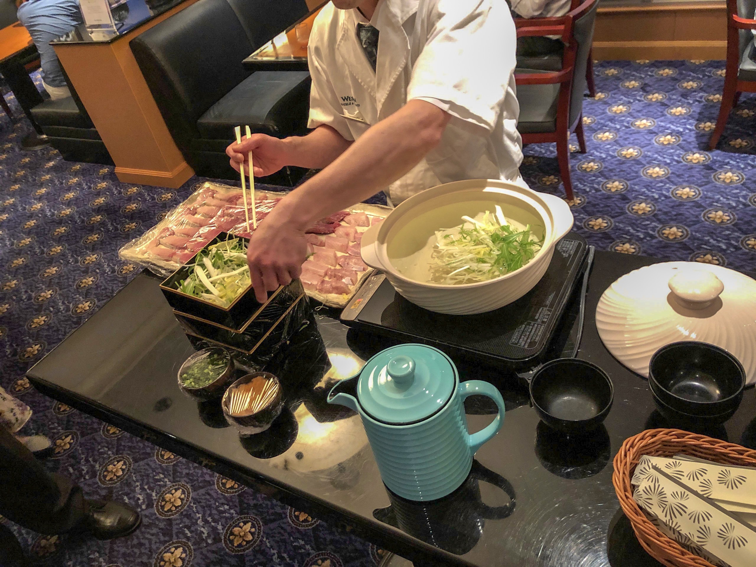 サーモン・ハム・チーズなどのコールドミール、ナッツ類の乾き物のほか、グリルチキンとガーリックライスの入ったミニ御膳やスープといったホットミールも用意されています。また、スタッフの方が目の前で調理していただけるコーナーがあり、今回は「ぶりしゃぶ」が提供されていました。お腹いっぱいにすることは難しいですが、2軒めにいく前に少しお腹に入れておく、といった感じで利用できるのではないかと思います。